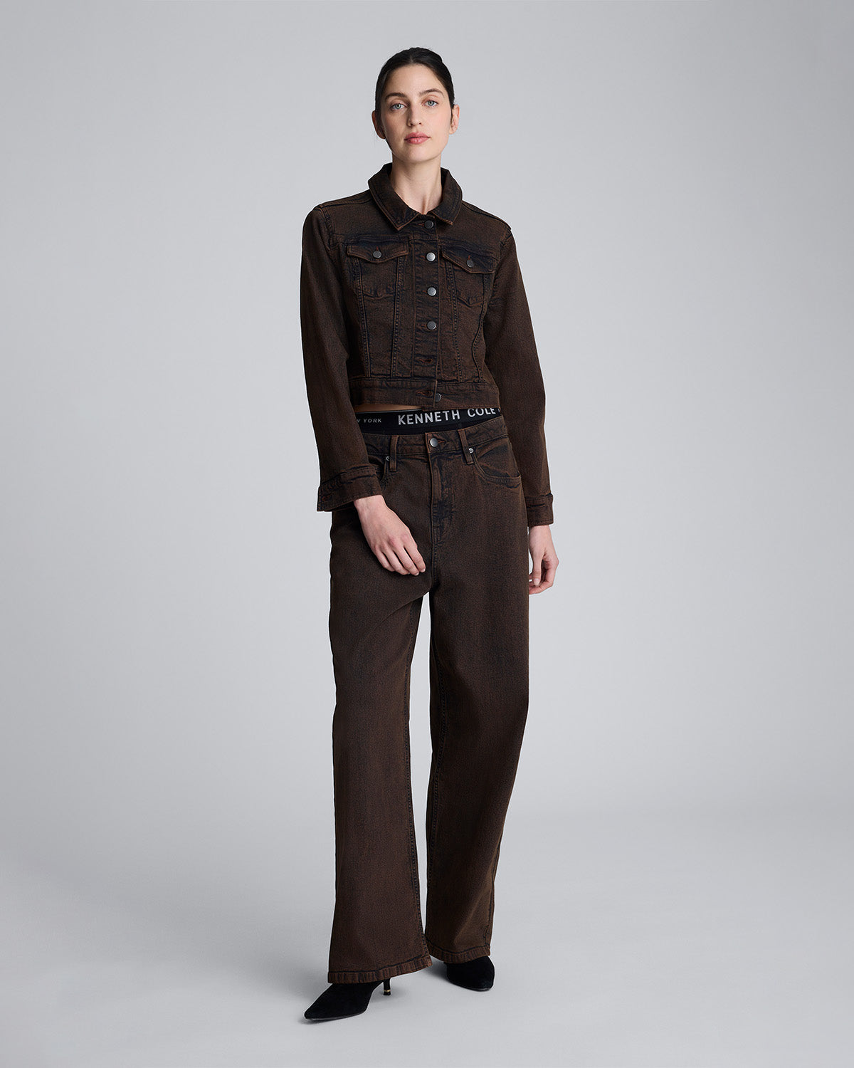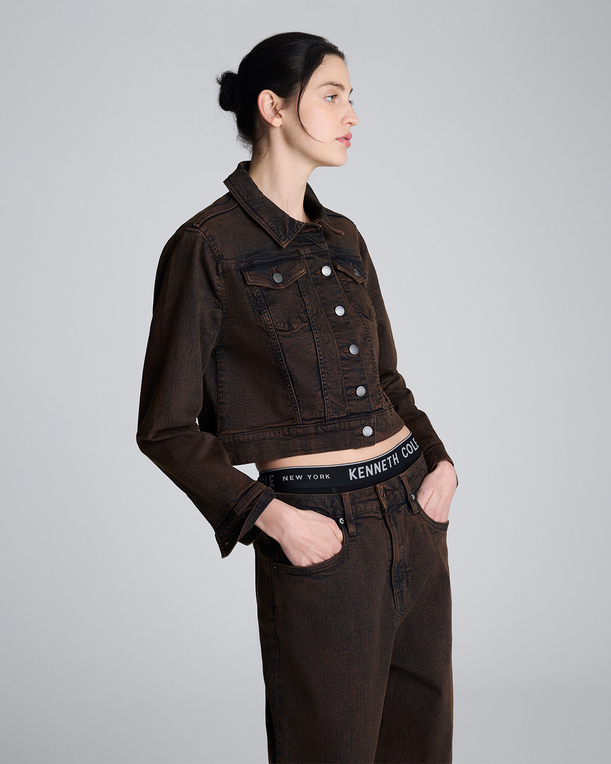 Eleva tu estilo urbano con esta chaqueta denim de Kenneth Cole, diseñada para quienes buscan una combinación perfecta entre elegancia casual y actitud contemporánea. Confeccionada en mezclilla de alta calidad en un tono café oscuro, esta prenda ofrece: