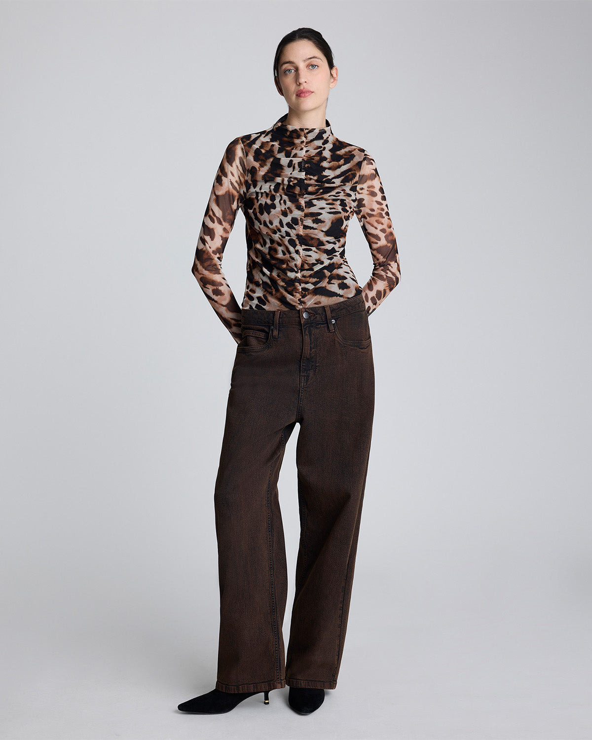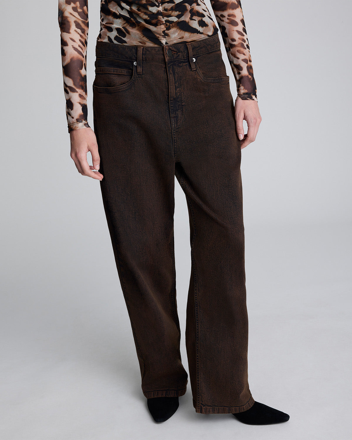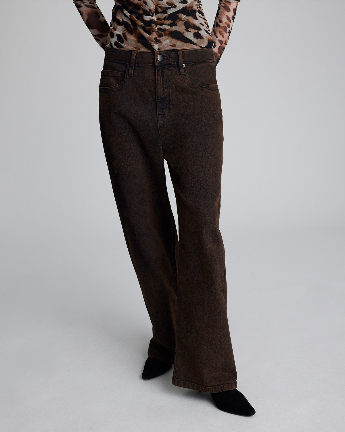 • Detalles clásicos de cinco bolsillos y cierre de botón y cremallera.