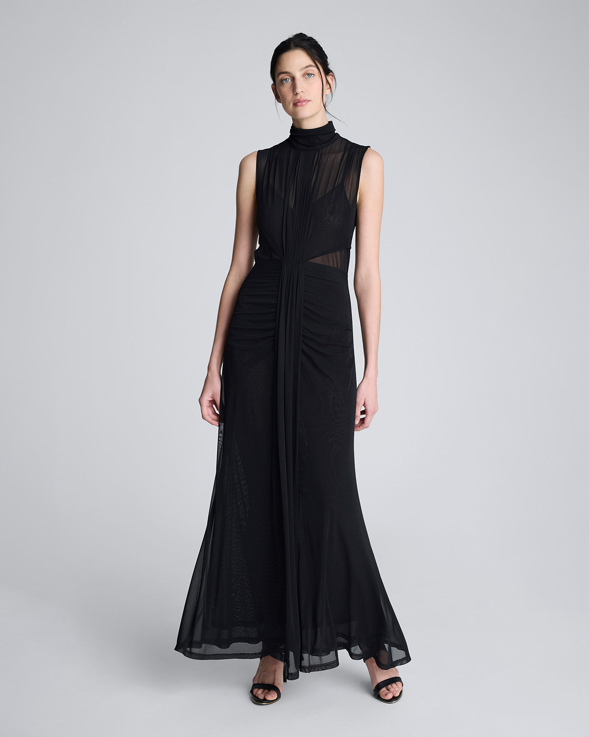 Este vestido midi negro combina sofisticación y sensualidad con un diseño contemporáneo y versátil. Confeccionado en un tejido de malla sólida con un 95% poliéster y 5% elastano, ofrece una estructura liviana y un ajuste cómodo que se adapta al cuerpo con elegancia. Perfecto para ocasiones especiales como cenas, eventos nocturnos o galas.